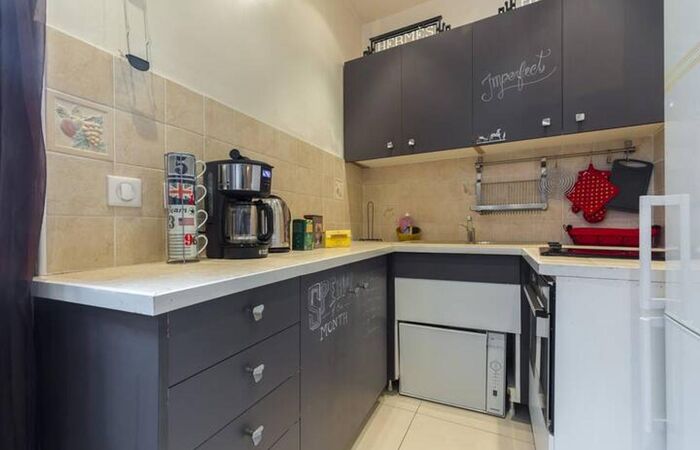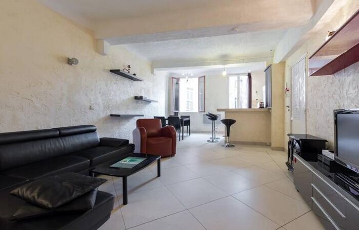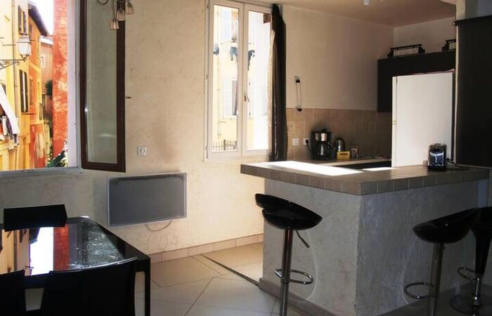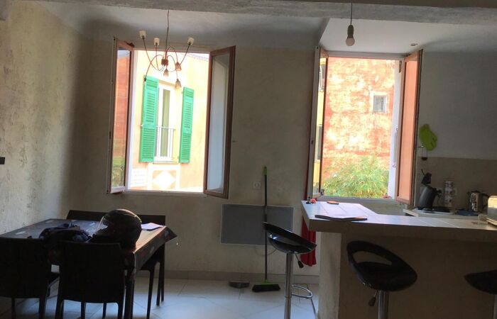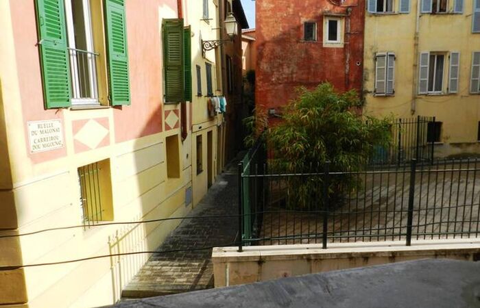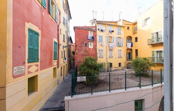 Vieux Nice, à deux pas du Cours Saleya et des plages, dans une Rue au calme, bel appartement ensoleillé de type 2 pièces en premier étage, grande pièce à vivre de 35 m², cuisine aménagée semi équipée, vue jardin, buanderie, dressing, WC indépendant