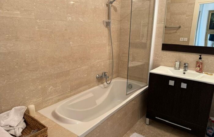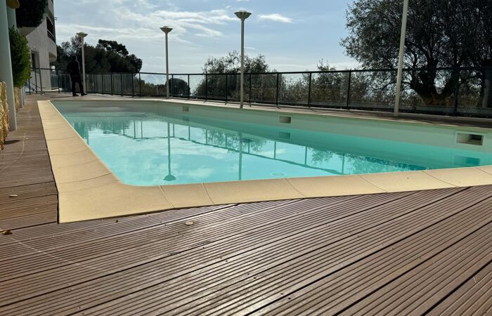 Il comprend 2 chambres, 2 salles de bains pourvues d'une douche, une cuisine ouverte sur le séjour, de nombreux dressings. piscine et un garage pour 2 véhicules, climatisation.