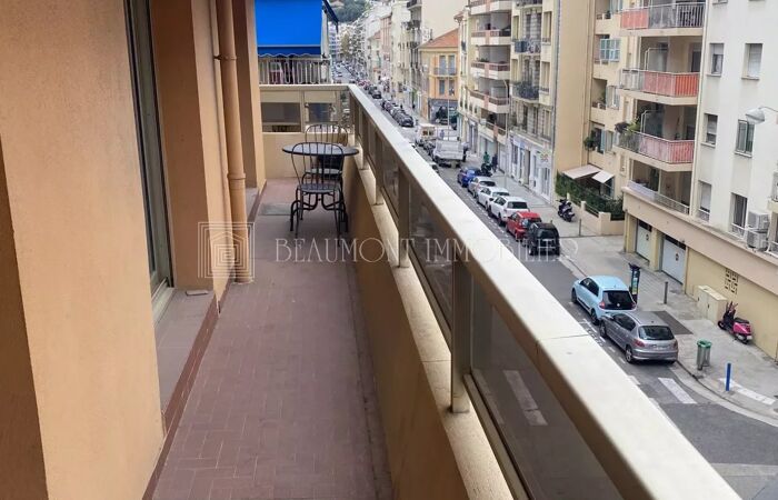 NICE République : A proximité immédiate du tramway et de toutes les commodités du quartier, dans un bel immeuble de standing bien tenu, spacieux 3 pièces de 81 m² d'angle exposé Sud et Est, en 3ème étage et en bon état, comprenant séjour, cuisine aménagée, deux belles chambres, dressing, salle d'eau, WC et grand balcon. Nombreux placards, climatisation.