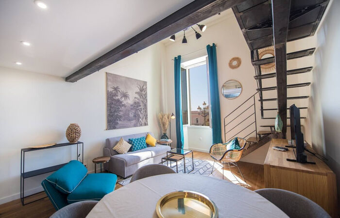 Vivez la douceur de la Côte d'Azur depuis ce sublime 2 pièces en duplex, niché au coeur du Vieux-Nice, face au marché coloré du Cours Saleya et à deux pas de la mythique Promenade des Anglais.