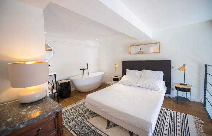 Ce bien d'exception offre : Un vaste séjour avec cuisine ouverte entièrement équipée Une salle de douche à l'italienne & WC séparé avec lave-mains Une chambre en mezzanine avec baignoire, pour une touche de raffinement Une vue imprenable sur le marché du Cours Saleya
