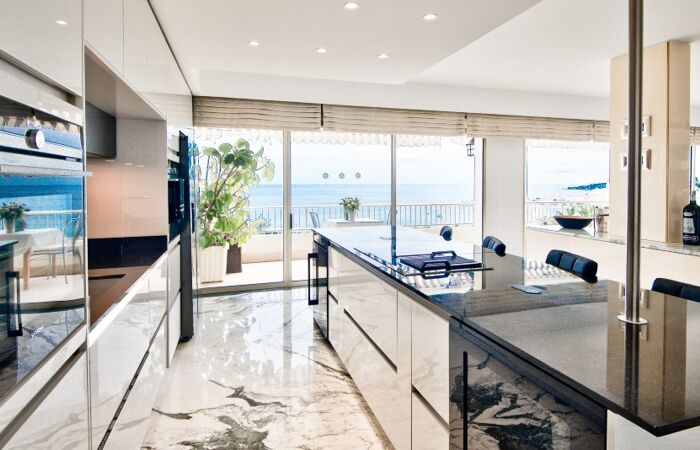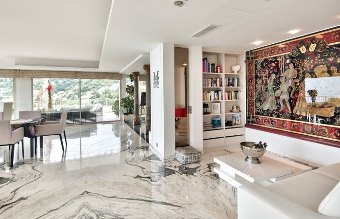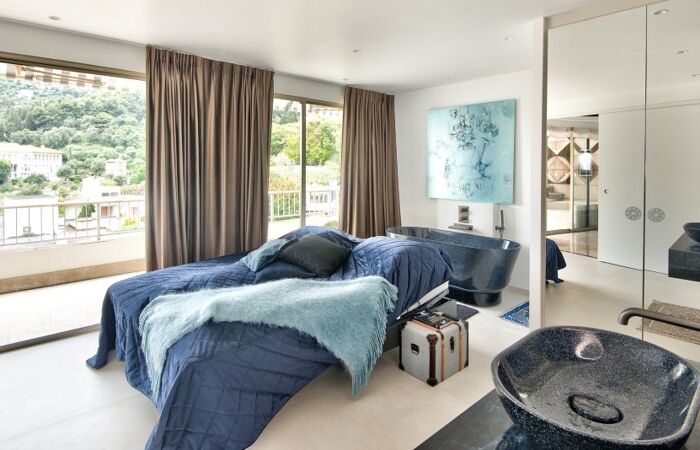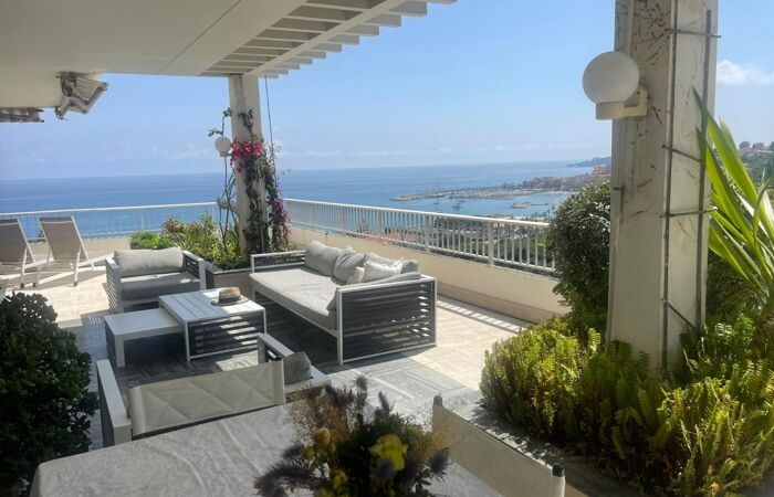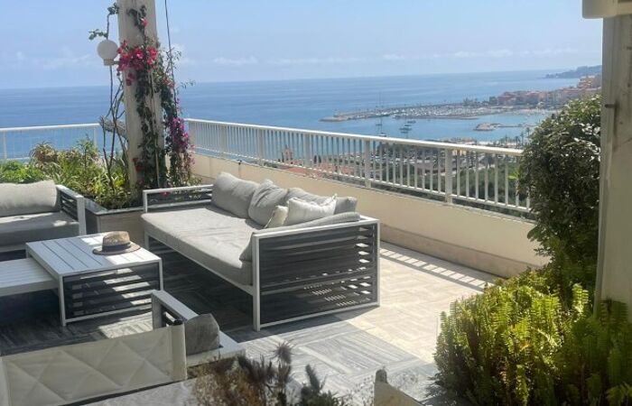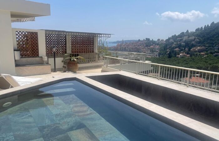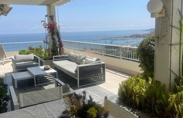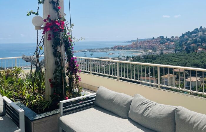 Appartement d'exception en dernier étage avec vue panoramique sur la mer et la vieille ville de Menton.