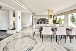 L'intérieur se compose d'un vaste hall d'entrée ouvrant sur un séjour lumineux aux volumes généreux, avec cuisine ouverte entièrement équipée. Il dispose de quatre grandes chambres, chacune avec sa propre salle de bains et WC, ainsi qu'un WC invité et une buanderie indépendante.