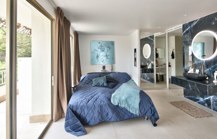 Les extérieurs sont tout aussi exceptionnels : une terrasse de 130 m² et un spectaculaire toit-terrasse de 235 m² avec jacuzzi et sauna, offrant une vue panoramique sans vis-à-vis sur la mer et le cœur historique de Menton.