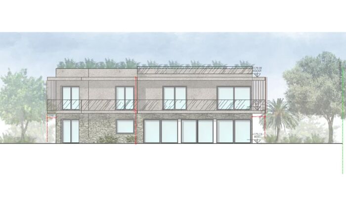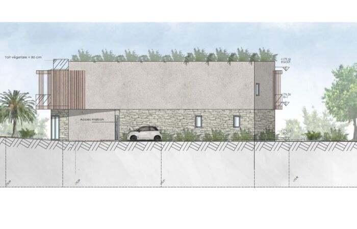 Nice Vinaigrier : Terrain plat de 1 086 m², avec permis de construire accepté et purgé pour une construction au style contemporain de 174 m², répartie sur deux niveaux.