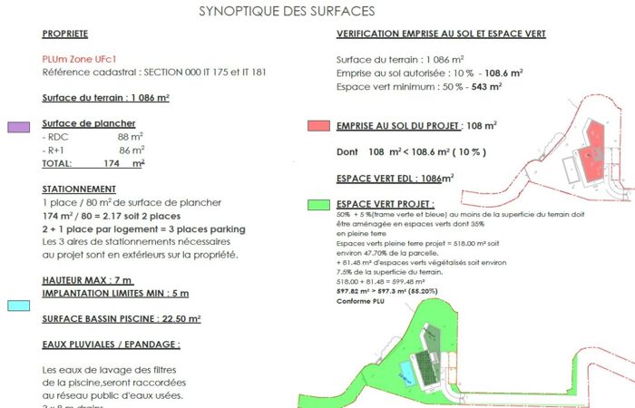 - Superficie terrain : 1086 m²