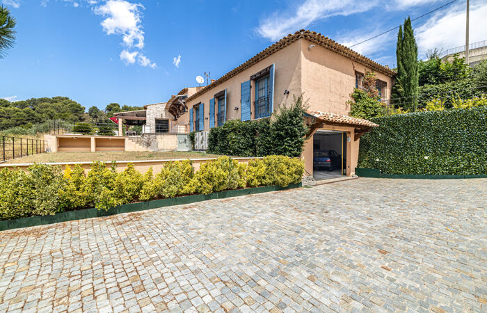 COLOMARS, Villa individuelle de 230 m2. Secteur Résidentiel. Idéalement située au calme absolu avec une exposition SUD-OUEST et une Vue Panoramique, vaste séjour 'cathédrale' 85 m2, construction traditionnelle 2003, tout en plain pied, parfait état , prestations haut de gamme, terrain 9800 m2, splendide Garage 6 voitures, cave à vin 25 m2 climatisée, dépendance aménageable 80 m2, superbe terrain exploitable, jeu de boules, emplacement piscine prévu et alimenté, cuisine d'été, vaste terrasse 80 m2, parkings extérieurs, chauffage pompe à chaleur, aspiration centralisée, COUP DE COEUR ASSURE pour cette superbe provençale au confort de vie exceptionnel !!!