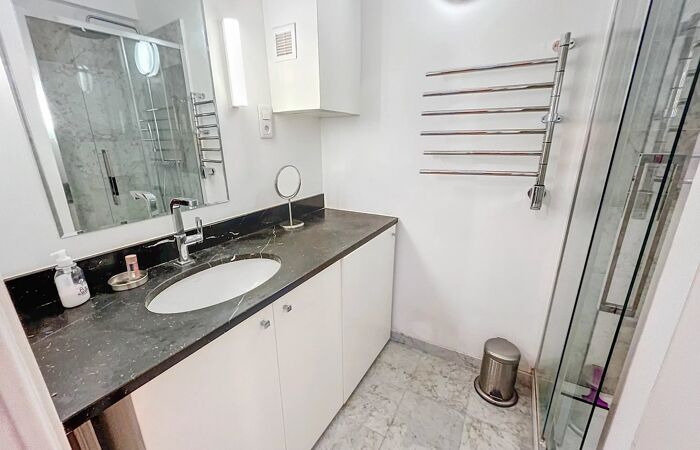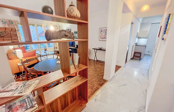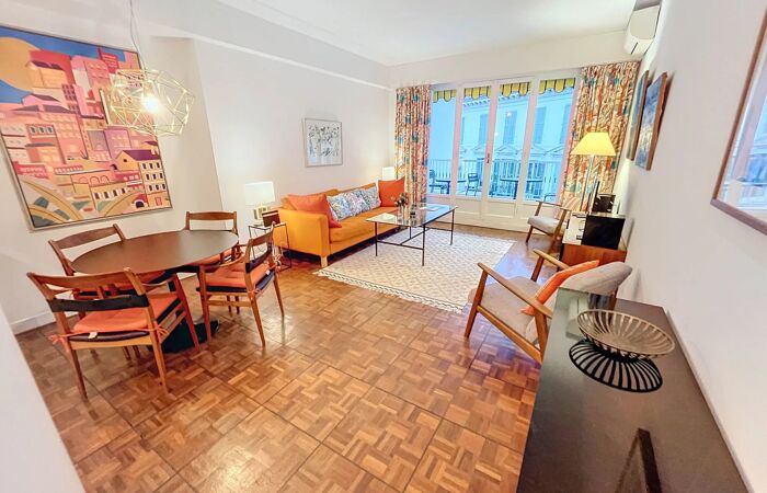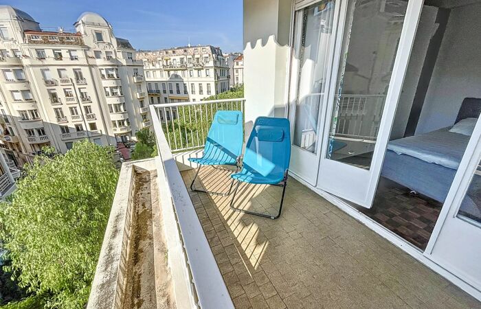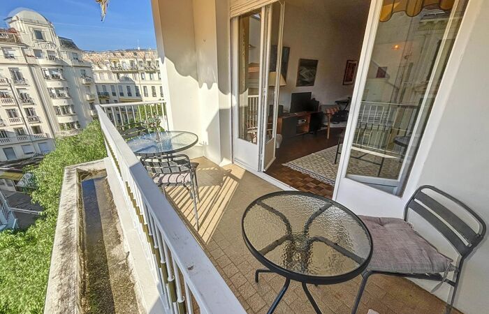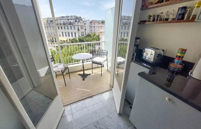 VENTE Appartement 2P Nice Carré d'Or 'LE PALACE' 3 Balcons Lumineux Vue VENTE APPARTEMENT 2P 53M2 NICE COEUR CARRÉ D'OR 'LE PALACE' BALCONS LUMINEUX VUE! Emplacement idéal et imbattable au cœur du Carré d'Or, une des résidences les plus recherchées de Nice, LE PALACE. Superbe appartement d'angle de 2 pièces de 53,05m2 (Loi Carrez) situé au 5ème étage et bénéficié des 3 grands balcons avec des belles vues dégagées. Lumineux et bien agencé, il vous offre un beau séjour avec place à manger, une chambre avec des placards intégrés et une cuisine indépendante équipée - tous avec leurs balcons individuels. En suite, un hall d'entrée avec un placard, une salle de douche et un wc. L'appartement est climatisé, il a du parquet d'origine aux sols et est très charmant. Vendu avec une cave au sous-sols. La résidence dispose d'Internet et de fibre optique, ascenseur et 2 gardiens qui s'occupent de l'entretien quotidien. A deux pas de la Piétonne, de la Place Masséna, de la Promenade des Anglais, de la mer, et du Tramway (Aéroport - Le Port) et les centres commerciaux 'Galeries Lafayette' et 'Nice Étoile' ainsi qu'une multitude de restaurants, cafés et boutiques. Ce bien est pour ceux qui recherchent quelque chose d'extraordinaire. DPE: D Charges annuelles: 2 636euros (soit 220euros par mois inclus chauffage et eau froid) Biens soumis au statut de la copropriété. Les honoraires de l'agence à la charge du vendeur.