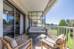 Terrasse de 18,5 m2. Exposée plein Sud. Somptueuse vue dégagée sur la verdure et la mer.