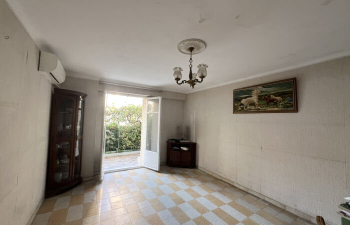 Nice - Cernuschi/Saint Sylvestre 2 pièces terrasse Jardinet. Dans le secteur de Saint Sylvestre, dans une copropriété bien entretenue, au calme et à proximité immédiate de toutes les commodités, 2 pièces idéalement distribué. Cet appartement est composé d'un séjour donnant sur une terrasse jardinet exposée Sud, une cuisine indépendante (possibilité de créer une cuisine US), 1 chambre, une salle d'eau avec WC. Grand parking collectif au sein de la résidence. Ce bien vendu avec une cave bénéficie d'un fort potentiel , travaux de modernisation à prévoir. Idéal première acquisition ! 'Les informations sur les risques auxquels ce bien est exposé sont disponibles sur le site Géorisques : georisques.gouv.fr.'