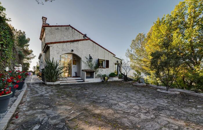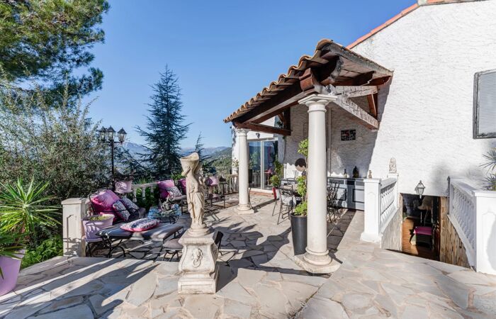 Villa avec vue panoramique, piscine et pool-house Sur les hauteurs de Nice, dans le cadre résidentiel et paisible de Colomars, cette villa de charme en position dominante offre un cadre exceptionnel. D'une superficie d'environ 160 m², la villa est située sur un vaste terrain arboré de 3100 m², aménagé avec un grand parking, une terrasse spacieuse, une piscine et un pool house, une vue imprenable et dégagée sur le Baou de St Jeannet, les montagnes et les collines environnantes. La villa comprend au niveau principal une entrée, un séjour lumineux avec cuisine ouverte équipée, deux chambres, une grande salle de bains, et une salle à manger avec vue panoramique. À l'étage, une autre chambre climatisée avec salle d'eau privative ainsi qu'un grand grenier aménagé en salle de jeu. Au niveau inférieur, un appartement deux pièces indépendant, idéal pour recevoir En plus de ses belles prestations, la propriété dispose de nombreuses places de stationnement. Possibilité de construire une seconde villa de 100m² environ sur le terrain, sous réserve d'obtention de permis. Calme absolu, exposition sud-ouest. Les informations sur les risques auxquels ce bien est exposé sont disponibles sur le site Géorisques : georisques.gouv.fr