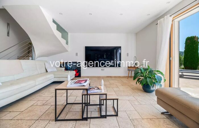 LEVENS – EXCLUSIVITE - Superbe villa provençale 243 m² avec piscine, jacuzzi et vue panoramique EXCLUSIVITE LEVENS – Superbe villa provençale 243 m² avec piscine, jacuzzi et vue panoramique À seulement 30 minutes de Nice, sur la commune prisée de Levens, découvrez cette magnifique villa récente (2014) de 243 m² habitables implantée sur une belle parcelle de 2000 m², au calme absolu et sans aucun vis-à-vis. Cette propriété d’exception, idéale pour une famille nombreuse ou deux générations, séduit par ses volumes et ses prestations haut de gamme. Vous serez immédiatement charmés par une pièce de vie de 100 m², baignée de lumière, ouvrant sur une vaste terrasse avec vue panoramique sur la campagne environnante et un aperçu mer. La villa se compose de 5 chambres, dont une suite parentale, ainsi que 2 salles d’eau et 1 salle de bain avec WC. Les prestations sont au rendez-vous : chauffage au sol, climatisation, double vitrage, matériaux de qualité. Côté extérieur, tout est pensé pour la détente et la convivialité : piscine chauffée, jacuzzi, et de larges espaces pour recevoir en toute intimité. Vous disposerez également d’une borne de recharge pour véhicule électrique et de la possibilité de stationner 4 à 8 voitures sur la propriété. Un cadre de vie unique pour ceux qui recherchent espace, confort et sérénité, à proximité immédiate des commodités de Levens et de Nice.