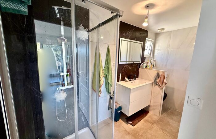 VILLA INDIVIDUELLE / CAGNES SUR MER Située dans un environnement paisible et verdoyant, cette maison familiale de 162 m²,avec un terrain de 2033 m², offre un cadre de vie idéal pour celles et ceux qui recherchent espace, confort et sérénité. Entièrement rénovée avec soin, elle séduit dès l’entrée par ses volumes généreux, sa luminosité et son ambiance chaleureuse. Le rez-de-chaussée s’ouvre sur une pièce de vie spacieuse et baignée de lumière, où le séjour et la salle à manger forment un espace convivial, parfait pour recevoir famille et amis. La cuisine indépendante, récemment rafraîchie, allie praticité et convivialité, offrant un accès direct sur le jardin. Vous y trouverez également une chambre de plain-pied avec sa salle d’eau privative, idéale pour accueillir vos invités ou pour une suite parentale de rez-de-chaussée. Un toilette invité. L’étage accueille quatre chambres, dont une magnifique suite parentale avec son dressing sur mesure et sa salle d’eau privative. Les trois autres chambres, toutes lumineuses et confortables, partagent une seconde salle de bain, offrant ainsi à chaque membre de la famille son propre espace de bien-être. La maison a fait l’objet d’une rénovation récente, avec notamment la reprise complète des peintures intérieures il y a moins d’un an, conférant à l’ensemble un style moderne, soigné et intemporel. Ses belles prestations, sa distribution fonctionnelle et son entretien impeccable en font un bien rare sur le marché. Édifiée sur un terrain plat et arboré de plus de 2 000 m², cette propriété profite d’un jardin clos et verdoyant, idéal pour les enfants, les repas en extérieur ou l’aménagement d’un espace détente avec piscine. Un garage fermé complète l’ensemble, offrant rangement et stationnement en toute sécurité et possibilité de plusieurs stationnement extérieur. Nichée dans un secteur calme et recherché, cette maison allie le charme de la campagne et la proximité des commodités (écoles, commerces, axes routiers). Elle saura séduire les familles en quête d’un environnement préservé, tout en restant proche des services essentiels.