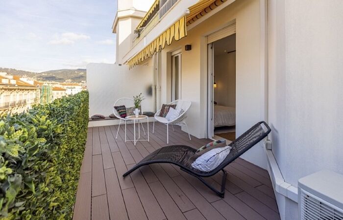 Rénové récemment et en parfait état, il se compose d'un séjour lumineux avec cuisine ouverte aménagée et équipée, ouvrant sur une première terrasse de près de 7m². La chambre, bénéficie elle aussi d'un accès à une seconde terrasse de 12m². Une salle d'eau avec WC complète l'ensemble.