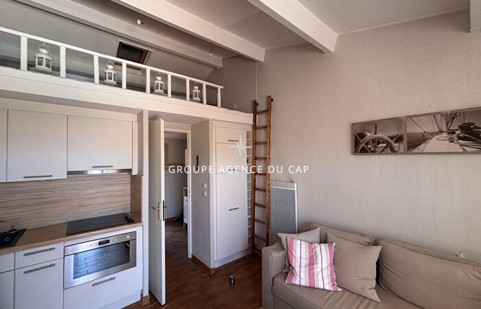 À VENDRE, Dans une résidence du Bord de mer avec piscine et gardien, appartement 2 pièces + mezzanine, dernier étage. Agréable résidence, très bien entretenue, cet appartement est distribué de la manière suivante : entrée, salle de douche, WC séparés, séjour avec kitchenette, chambre avec placard, mezzanine (hauteur inférieur à 1.80m soit 9.1m²), et belle terrasse avec vue mer en latérale et piscine.