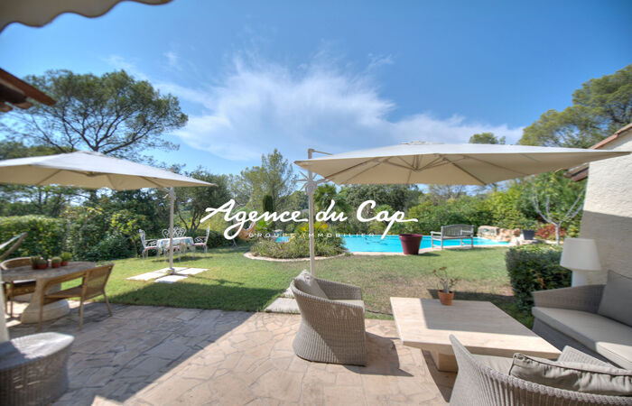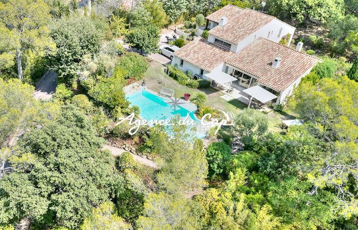 Le vaste terrain de plus de 3000 m² permet de stationner plusieurs véhicules, en plus d'un grand garage. Le jardin méditerranéen, riche en essences locales, et la piscine à débordement, parfaitement exposée au soleil, ajoutent une touche de sérénité à ce havre de paix.
