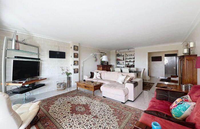 NICE / CIMIEZ - 5 Pièces, Terrasses Vue Mer, Piscine, Cave et Garage NICE / CIMIEZ - Avenue des Arènes de Cimiez Découvrez cet élégant 5 pièces d'une superficie de 125m2, situé en étage élevé au sein d'une résidence avec piscine de grand standing et récemment ravalée, alliant confort et quiétude. Il se compose d'un vaste séjour de 36 m2, superbe pièce à vivre donnant sur une grande terrasse (15m²) baignée de soleil, d'une cuisine indépendante équipée, de 4 grandes chambres, de deux salles d'eau ainsi que deux toilettes (dont un indépendant), toutes les pièces donnant sur un extérieur (terrasse ou balcon). Ce bel appartement orienté sud/ouest côté séjour, mais également traversant, dispose d'une magnifique vue mer qui vous permettra de bénéficier toute l'année du soleil généreux de la Côte d'Azur, au calme et sans vis-à-vis. Vous y trouverez des prestations de qualité : parquet et climatisation dans les chambres, de nombreux placards, double vitrage, cuisine neuve, volets et stores électriques, terrasse éclairée avec point d'eau et accès ascenseur sécurisé. Un grand garage fermé et ainsi qu'une cave viennent compléter ce bien. Un garage supplémentaire peut être vendu en sus. Les informations sur les risques auxquels ce bien est exposé sont disponibles sur le site Géorisques : georisques.gouv.fr