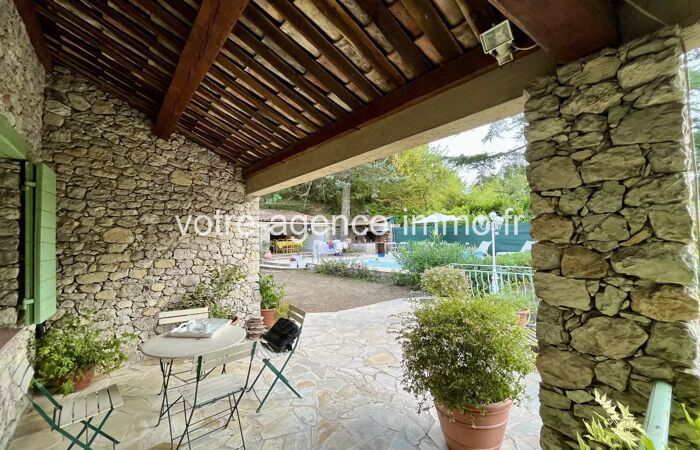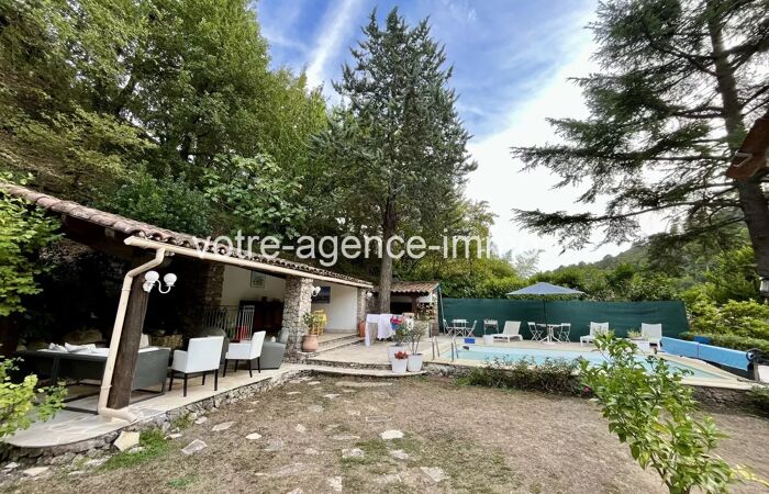 Villa Provençale Tourette-Levens Villa de charme avec dépendance, piscine et vue nature. Nichée dans un écrin de verdure, cette magnifique villa de 276 m² habitables (dont un 2 pièces indépendant de 47 m²) séduit par son cadre verdoyant, sa luminosité naturelle et ses volumes généreux. Un lieu idéal pour les amoureux du calme et de la nature, à seulement 20 minutes de Nice Est. À l’intérieur, un salon/séjour de 40 m² avec cheminée, ouvert sur une vaste terrasse donnant sur le jardin avec sa piscine, pool house, cuisine d'été. Une cuisine indépendante entièrement équipée, deux chambres (dont une avec accès direct au jardin), une salle de bains et une buanderie. Les amateurs de bien-être apprécieront également le sauna et l’atelier aménagé. À l’étage, la suite parentale séduit par son espace généreux et son atmosphère intimiste : salle d’eau privative, toilette séparée, coin lecture, cheminée et terrasse avec vue dégagée sur la nature. De plain-pied, un appartement indépendant de 47 m² (pouvant accueillir jusqu’à 4 personnes) offre une chambre, un salon, une cuisine américaine équipée, une salle d’eau et sa terrasse privée, parfait pour recevoir vos invités ou rentabiliser en location saisonnière. Le tout repose sur un terrain clos de 2 243 m² avec portail électrique, garage de 30 m², abri voiture et plusieurs places de stationnement. Côté transport, la maison est desservie par les lignes de bus. À DÉCOUVRIR SANS TARDER ! Photos à venir les informations sur les risques auxquels ce bien est exposé sont disponibles sur georisques.gouv.fr