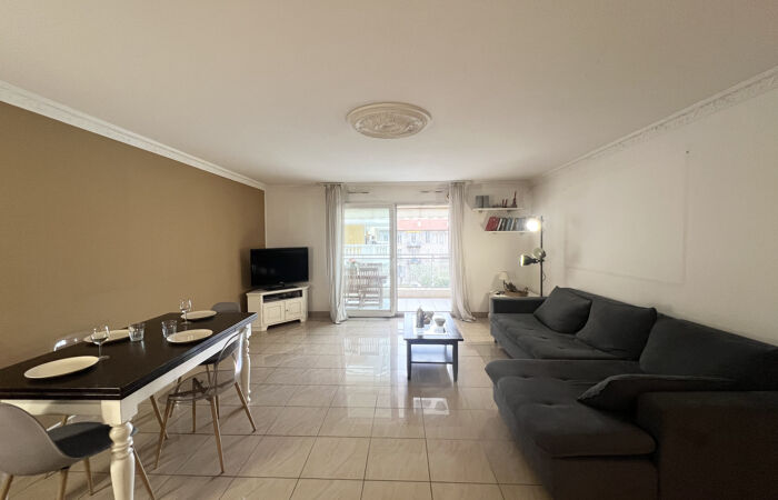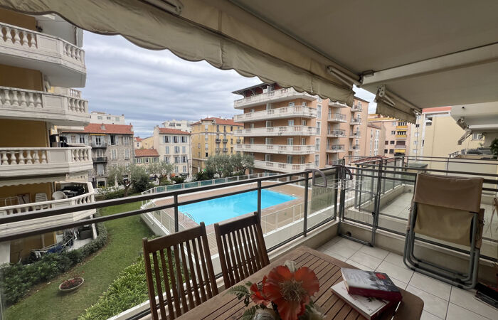 Dans une très belle copropriété avec piscine, à deux pas de la mer, proche des commerces et des transports, Vaste 3 Pièces comprenant une entrée, un grand séjour avec terrasse plein sud, une cuisine ouverte, une salle de bains avec WC, une chambre avec dressing, une chambre avec placard mural. Climatisation réversible collective. Proche toutes commodités. Arrêt de tramway (ligne 2 Aéroport/Port) en bas de l'immeuble (arrêt MAGNAN). Possibilité parking privatif en sus. Les informations sur les risques auxquels ce bien est exposé sont disponibles sur le site Géorisques : www.georisques.gouv.fr