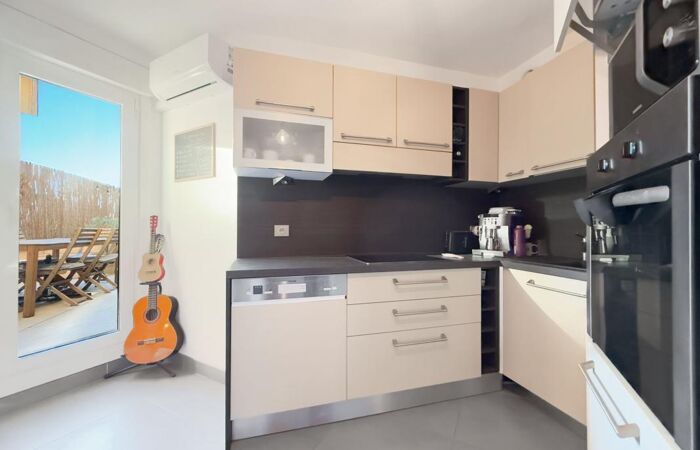 Dans une copropriété de standing avec piscine, 3 PIECES de 67,89 m² au 3ème étage avec ascenseur comprenant une entrée, un séjour avec cuisine ouverte donnant sur une grande terrasse de 42 m², deux chambres donnant également sur la terrasse, une salle de douche avec WC et un dressing/buanderie. Climatisation. Une cave vient compléter ce bien et possibilité d'un garage à la location. Calme absolu. Exposition Sud/Est. Exclusivité ORPI !