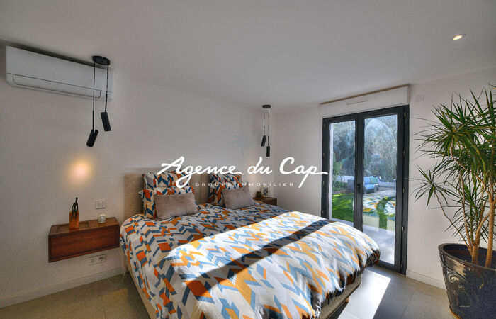 Entièrement rénovée avec des matériaux de qualité, cette villa de plain-pied se compose d'une entrée chaleureuse, d'une cuisine ouverte entièrement équipée, et d'un vaste salon-salle à manger baigné de lumière grâce à de grandes baies vitrées donnant sur la terrasse et la piscine orientée plein sud. Vous y trouverez également une suite parentale avec dressing et salle de bains-douche, une deuxième chambre avec salle d'eau privative, une buanderie et des toilettes invités.