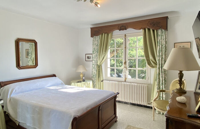 Jouissant d'un emplacement rare et recherché à Saint-Raphaël, cette villa située au calme absolu bénéficie d'une superficie totale de 170m2. Je vous invite à découvrir le fort potentiel de rénovation ou de re-distribution que cette propriété propose. En effet disposant actuellement de deux appartements indépendants, cette charmante maison orientée Sud, vous offrira un cadre de vie paisible et confidentiel en bout d'impasse, avec l'opportunité d'un rendement locatif. Elle est édifiée sur un terrain piscinable de 849m2 clos, végétalisé, comportant plusieurs arbres centenaires, disposant de plusieurs places de parkings et d'un cabanon de rangement. Le bien se compose à l'étage, un hall d'entrée, une pièce de vie spacieuse prolongé d'une agréable terrasse de 18m2, une chambre parentale lumineuse disposant d'un bel aperçu sur le jardin, une salle de bain comprenant une douche, un WC indépendant, une vaste cuisine séparée et une seconde chambre. Au rez-de chaussée on retrouve un double séjour salle à manger avec kitchenette, une chambre, une salle d'eau avec WC et des annexes.