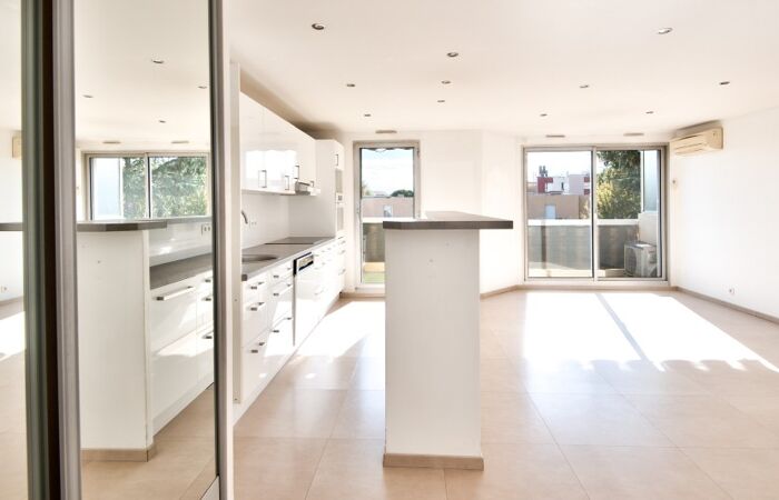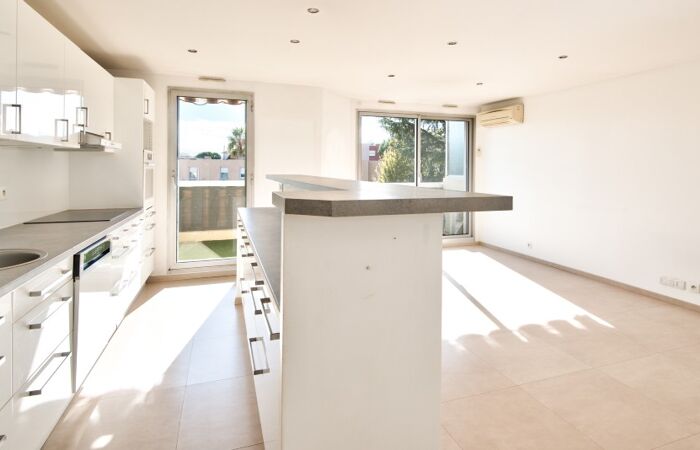 Saint Laurent du Var - Dans un domaine sécurisé, au cœur d'un quartier résidentiel recherché, à proximité immédiate du centre-ville et de toutes ses commodités, découvrez ce bel appartement de 3 pièces de 63 m² en parfait état situé au dernier étage d'une résidence récente de standing.