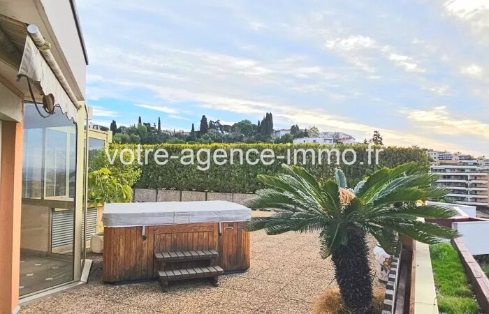 Nice corniche fleurie roof top de 115m² avec terrasse de 118m² avec garage et parking- Vue mer EXCLUSIVITE EXCEPTIONNELLE VILLA SUR LE TOIT – NICE OUEST Dernier étage – Vue mer panoramique – Calme absolu – Terrasse 118 m² – Jacuzzi & Hammam Découvrez cette villa sur le toit unique de 100,93 m² (loi Carrez), au dernier étage d’une résidence de standing à Nice Ouest. Véritable havre de paix, elle offre une vue mer panoramique à 180° jusqu’au Cap d’Antibes, dans un environnement calme et verdoyant. La pièce maîtresse ? Une terrasse d’exception de 118 m², baignée de soleil grâce à son exposition Sud-Ouest, où chaque lever ou coucher de soleil devient un spectacle. Vous y profiterez d’un jacuzzi et d’un hammam pour des moments de détente incomparables. L’appartement, traversant et en angle, bénéficie d’une luminosité exceptionnelle. Il se compose actuellement d’un vaste séjour avec cuisine équipée ouverte (44m² env entrée comprise), de trois chambres, d’un dressing, et 2 salle d’eau et 2 wc séparés. Des travaux de modernisation vous permettront de révéler tout le potentiel de ce bien rare et d’y créer l’appartement de vos rêves. Nichée dans une résidence des années 90 parfaitement entretenue, avec piscine et espaces verts, cette adresse conjugue sérénité et proximité des commodités : commerces, bus et accès rapide vers le centre-ville ou les grands axes. Le confort est assuré par le double vitrage, la climatisation réversible et une bonne performance énergétique déjà obtenue avant rénovation. Un garage fermé, une place de stationnement extérieure et deux caves complètent ce bien d’exception. Possibilité d'un garage et d'un parking en supplement Nb de lots: 141 dt 39 habitations Charges annuelles:4870euros Ce bien est soumis à la copropriété Les informations sur les risques auxquels ce bien est exposé sont disponibles sur le site Géorisques : georisques.gouv.fr.
