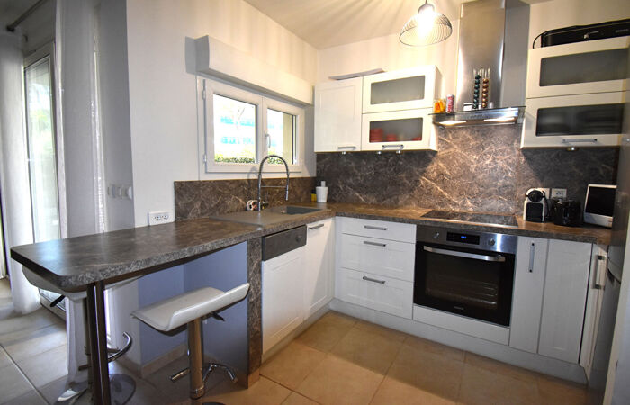 EN EXCLUSIVITE ! Saint-Raphaël, quartier Boulouris, dans une résidence sécurisée avec beau parc paysagé, piscines et gardien, appartement 2 pièces de 52 m² en rez-de-jardin. Ce T2 est composé d'une entrée desservant un salon séjour avec cuisine ouverte, une chambre, une salle de bains et un WC indépendant. Une vaste terrasse et un jardinet agrémente cet appartement. Votre agence Millésime Immobilier Boulouris vous propose ce bien avec de belles prestations, la climatisation réversible et un garage en sous-sol. A pied de la mer et des commerces dans le quartier très prisé de Boulouris.