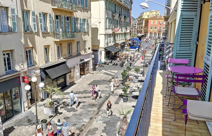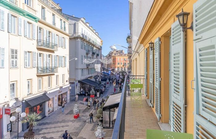 VENTE - Appartement 4P Nice Carré d'Or Piétonne Balcons Dernier Etage Superbe! VENTE APPARTEMENT 4P 90M2 NICE CARRÉ D'OR PIÉTONNE 2 BALCONS DERNIER ÉTAGE SUPERBE ET RARE! Emplacement de rêve! Situé au début de la Piétonne, rue Masséna et à 80 m de la Place Masséna, au 2ème et dernier étage d'un immeuble Niçois. Charmant appartement de 4 pièces de 90m2 (111m2 surface totale), traversant S/N bénéficiant de 2 vastes balcons de 7m2 de chaque coté et une belle vue dégagée sur la Piétonne. Bien agencé et lumineux, ce bien vous offre un spacieux séjour avec une belle hauteur sous plafond, une cuisine indépendante équipée, 2 chambres avec placards, une salle de bains avec wc et wc d'invité. A l'étage, une grande chambre en mezzanine de 21m2 surface sol avec placards et une salle de douche avec wc. Vous trouverez les commerces et les restaurants juste à cote l'immeuble et la mer, le Tramway et la vielle ville seulement à quelque minutes à pied. Parfait comme résidence principale, résident secondaire ou investissement locatif. Faites de cet appartement votre nouveau chez-vous et vivez au rythme des Niçois et de la Côte d’Azur. Charges annuel: 2 252euros (soit 188euros par mois) DPE: NC Honoraires d'agences à la charge de vendeur. Selon de nos informations, pas de procédures en cours.