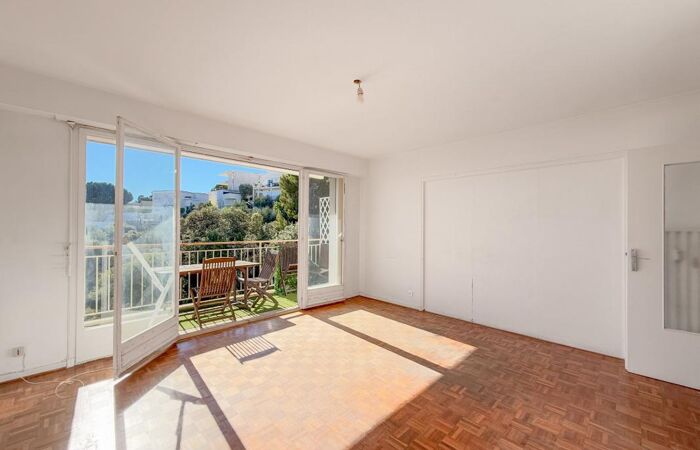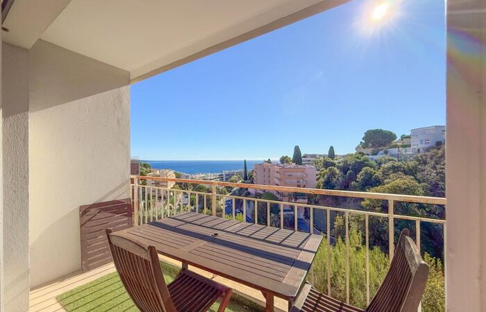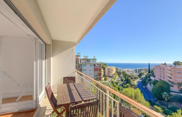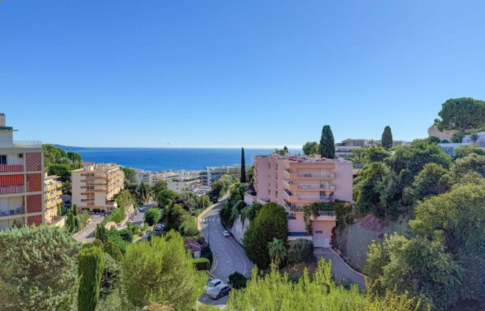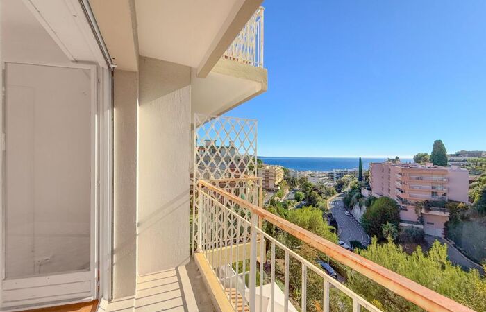 Avenue de la Lanterne - Appartement coup de cœur offrant une vue exceptionnelle sur la mer, orienté sud-est depuis sa terrasse et son balcon. Situé au 2e étage avec ascenseur d'un bel immeuble très bien entretenu sur les hauteurs de Nice ouest, il se compose d'une entrée, d'un séjour ouvrant sur la terrasse, de deux chambres dont une avec balcon, d'une cuisine avec loggia, d'une salle de bain et d'un WC indépendant. À rénover, il présente un beau potentiel. Une cave, un box fermé et un emplacement de stationnement pour les invités complètent ce bien. Chauffage collectif avec répartiteurs individuels, aucun travaux à prévoir dans la copropriété.