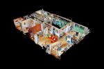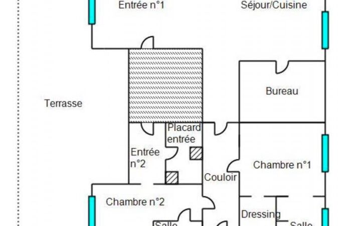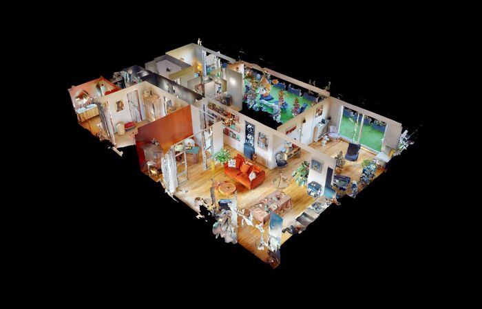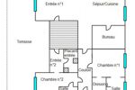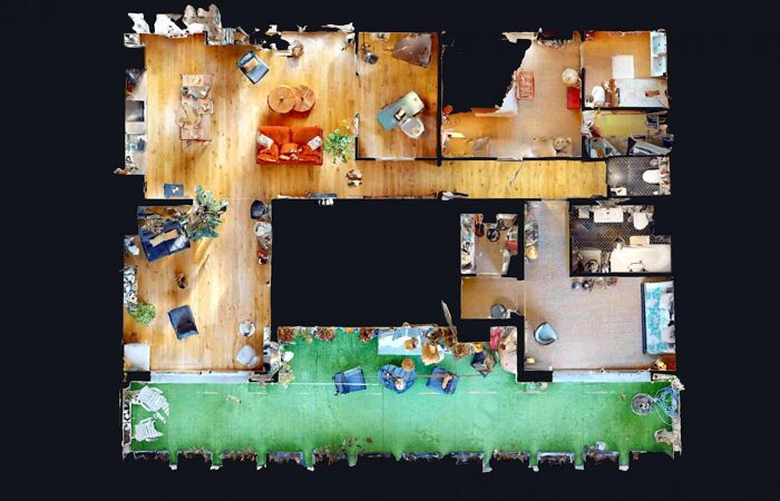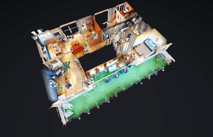 L'entrée s'ouvre sur un spacieux double séjour avec cuisine équipée au style contemporain, donnant directement sur une magnifique terrasse à ciel ouvert de 48 m², idéale pour recevoir, se détendre ou travailler en plein soleil. Un bureau cloisonné avec verrière complète cet espace de vie lumineux.