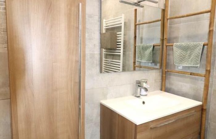 - Au rez-de-chaussée : Une entrée, une salle d'eau, un WC indépendant, un vaste séjour avec une très belle et fonctionnelle cuisine ouverte.
