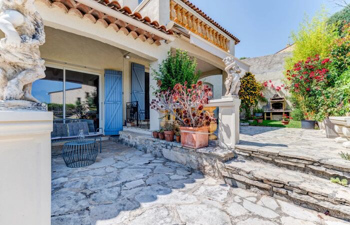NICE-FABRON VILLA 5 PIECES PISCINE TERRASSE JARDIN VUE MER Charme, volumes et prestations pour cette villa 5 pièces avec piscine, vue mer et jardin paysager. Nichée dans le quartier très recherché de Fabron, au sein du lotissement privé et résidentiel, cette superbe villa aux lignes intemporelles, édifiée en 1995, entièrement rénovée en 2017, sur un terrain en restanques de 1 284 m², offre environ 140 m² de surface habitable déployée sur trois niveaux. Son exposition traversante sur les quatre orientations lui confère une luminosité exceptionnelle à toute heure de la journée, tandis que son environnement verdoyant et son calme absolu en font un véritable havre de paix. Le rez-de-jardin accueille une pièce de vie chaleureuse composée d’un double séjour avec poêle à bois, prolongé par une grande cuisine dinatoire ouverte, idéale pour recevoir. Le tout s’ouvre sur deux vastes terrasses, véritables espaces de vie en extérieur. Deux belles chambres avec mezzanine viennent compléter ce niveau, accompagnées d’une salle d’eau avec WC, ainsi que de nombreux espaces de rangements (cave, garage aménagé en buanderie). À l’étage, vous trouverez deux autres chambres lumineuses, chacune avec son dressing, dont l’une bénéficie d’un accès direct à une terrasse privative ; un espace nuit idéal pour la tranquillité des occupants, complété par une salle de bains avec WC. Côté loisirs, la villa séduit par son espace piscine parfaitement aménagé : piscine à l’eau salée chauffée, douche extérieure, pool house avec cuisine d’été, plages en teck, le tout dans un cadre intimiste et arboré. Le jardin en restanques, agrémenté de multiples essences méditerranéennes, d’arbres fruitiers et d’un potager, séduira les amateurs de nature et de moments de convivialité en plein air. En parfait état d’entretien, la villa offre de belles prestations : climatisation réversible, double vitrage, récupération des eaux de pluie, 2 à 3 stationnements à l’entrée. Une adresse privilégiée, rare sur le secteur, conjuguant confort, charme et qualité de vie. Charges annuelles : 480 euros Estimation des coûts annuels d'énergie du logement entre 1170euros et 1582euros par an. Les informations sur les risques auxquels ce bien est exposé sont disponibles sur le site Géorisques : georisques.gouv.fr' Pour toutes demandes d'informations et visite, merci de contacter Barbara ALBERGANTI au +33658521676