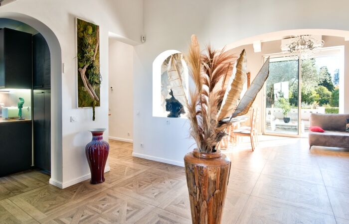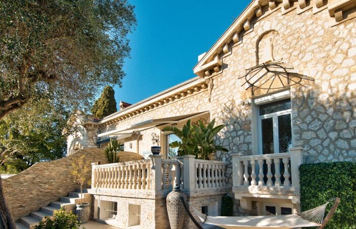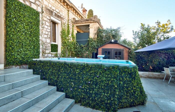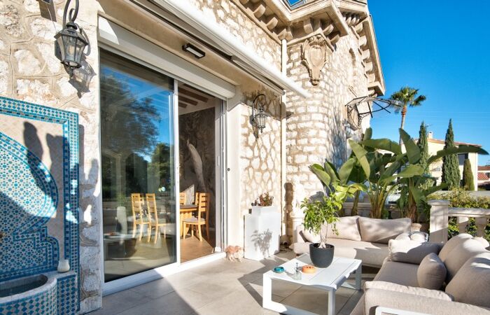 Dans une sublime bastide centenaire en pierre, divisée en 3 lots et située dans le quartier de standing des Bréguières, à 10 minutes à pied du bord de mer du Cros de Cagnes et des commodités.