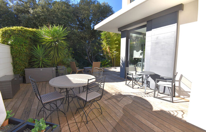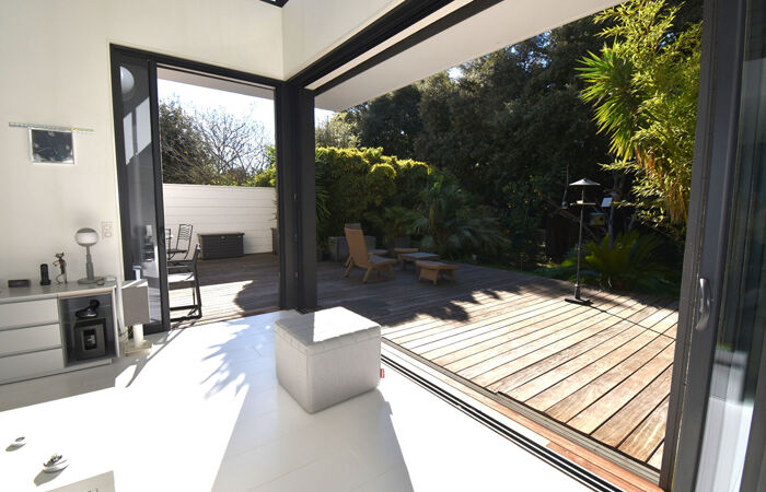 A ST RAPHAEL, quartier prisé de Boulouris. Découvrez cette superbe villa contemporaine, récente et lumineuse, nichée au coeur d'un écrin de verdure exceptionnel. Offrant 5 pièces spacieuses, cette propriété réunit élégance, confort et sérénité. Les vastes baies vitrées invitent la nature à chaque instant, créant une atmosphère paisible et raffinée. Vous serez séduits par son espace de vie ouvert de 72 m², ses finitions haut de gamme et sa parfaite harmonie avec l'environnement. À l'extérieur, un jardin soigneusement paysagé vous garantit calme absolu, intimité et moments de détente inégalés. Une adresse rare, pour ceux qui recherchent la modernité au coeur d'un cadre naturel préservé tout en restant à proximité immédiate des commerces et des plages. Un véritable havre de paix, à découvrir sans tarder.
