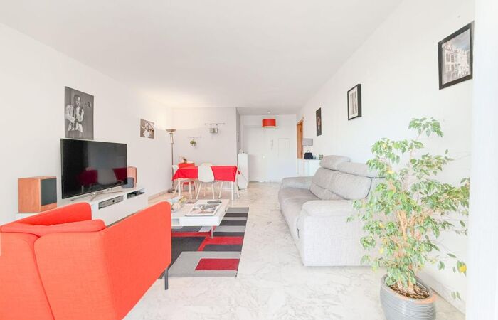 Dans la prestigieuse résidence "LES BELLES TERRES" avec piscine, club house, parc arboré, terrain de tennis/basket/pétanque, salle de sport, jardin d'enfants, 2 PIECES de 58,40 m² comprenant un grand séjour donnant sur une belle terrasse avec vue mer, une cuisine indépendante donnant sur un autre balcon, une chambre donnant également sur le balcon, un dressing, une salle de bains et un WC indépendant. Un parking couvert et une grande cave viennent compléter ce bien. Idéalement situé dans une copropriété recherchée et sécurisée avec gardien 24/24. Idéal pour une résidence principale ou secondaire ou investissement locatif (location saisonnière autorisée). EXCLUSIVITE ORPI !