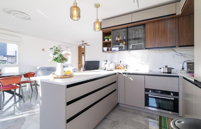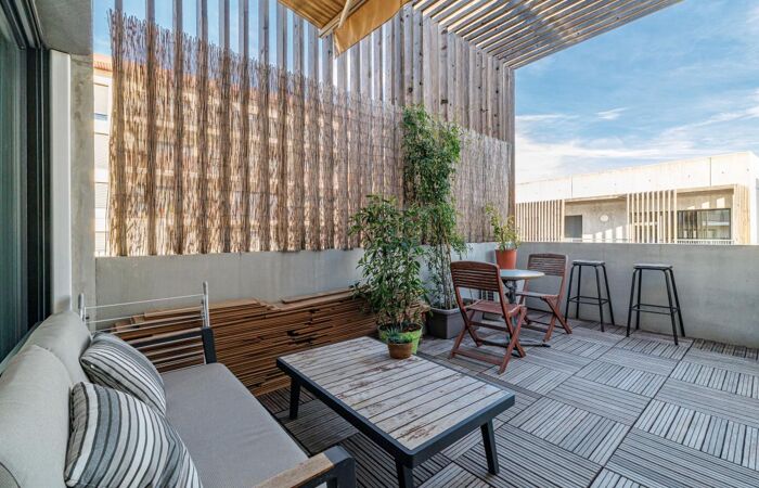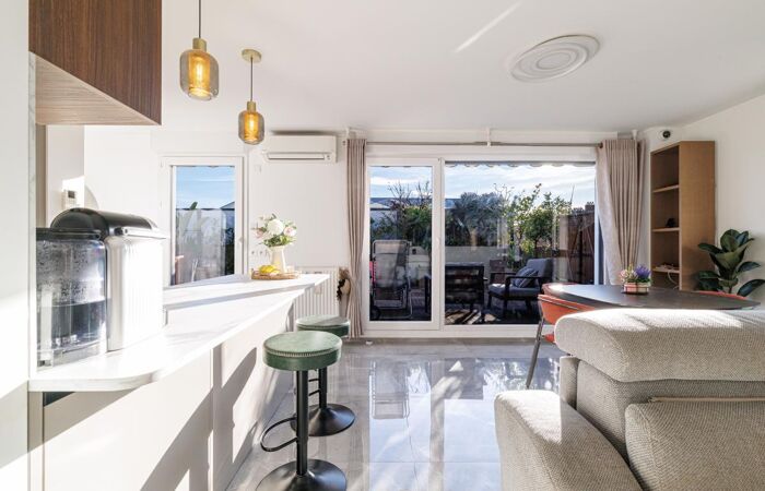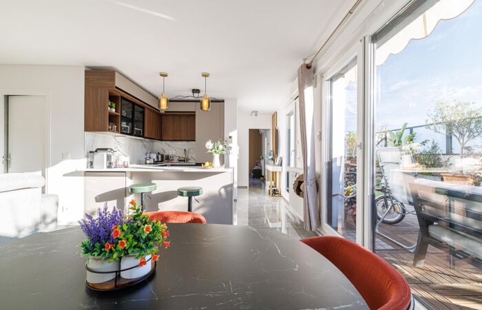 A magnificent 80 sqm 3-bedroom apartment (T4) on the top floor with elevator in a recent residence. It features a spacious, light-filled living room, a brand-new high-end open-plan kitchen, three bedrooms, a bathroom and a shower room. What makes this property truly exceptional? Its stunning 49 sqm south-facing terrace, sheltered from view, allowing you to enjoy the Mediterranean climate all year round.