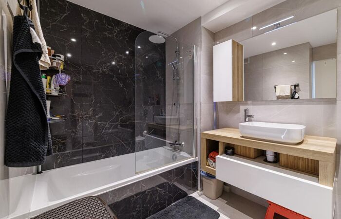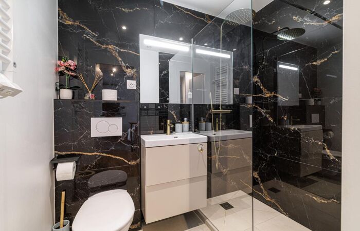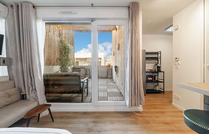 On the same landing, a brand-new 24 sqm studio offering a comfortable living space, an open kitchen, as well as an elegant shower room with toilet. The bonus? A deep 14.7 sqm east-facing terrace, an exceptional feature for a studio.