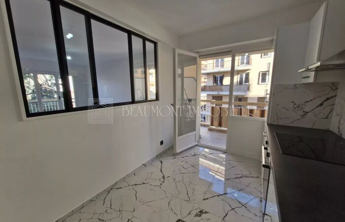 A 2 pas de la PLace St Roch et du Tram venez découvrir ce splendide 3P de prés de 70m²+ balcon Terrasse d'angle de 25m² offrant une vue dégagée sur les collines et une excellente luminosité, Cet Appartement entièrement rénové vous permettra de bénéficier d'un grand séjour avec une cuisine moderne équipée semi ouverte par une verrière, une porte blindée, des volets électriques, une climatisation dans toutes les pièces, une cave et une Place de Parking privative complète l'équipement sans faute.