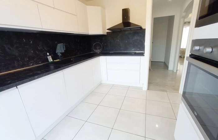 FERBER/SAINTE MARGUERITE 3 pièces vue mer, FERBER/SAINTE-MARGUERITE, Bel appartement traversant de 3 pièces avec terrasse vue mer (sud) et balcon. Situé au 6ème étage d'une résidence avec ascenseur et gardien, à proximité de la Promenade des Anglais, des commerces et du tramway, ce bel appartement moderne se compose d'une entrée avec placard, un salon-salle à manger ouvrant sur une belle terrasse à la vue mer, une cuisine séparée joliment aménagée, 2 grandes chambres avec placards, une salle de bains, un WC, une cave. Aucun vis à vis, climatisation. L'appartement est traversant et bénéficie d'une climatisation. Un bel appartement facile à vivre pour profiter de la douceur de vie niçoise. Idéal pour un mode de vie citadin. Les honoraires d'agence de 6% sont inclus dans le prix de commercialisation. Les informations sur les risques auxquels ce bien est exposé sont disponible sur le site : https://georisques.gouv.fr/ Pour toutes demandes d'informations et visite, merci de contacter Florence BENOIT REMONDEAU au +33781859161