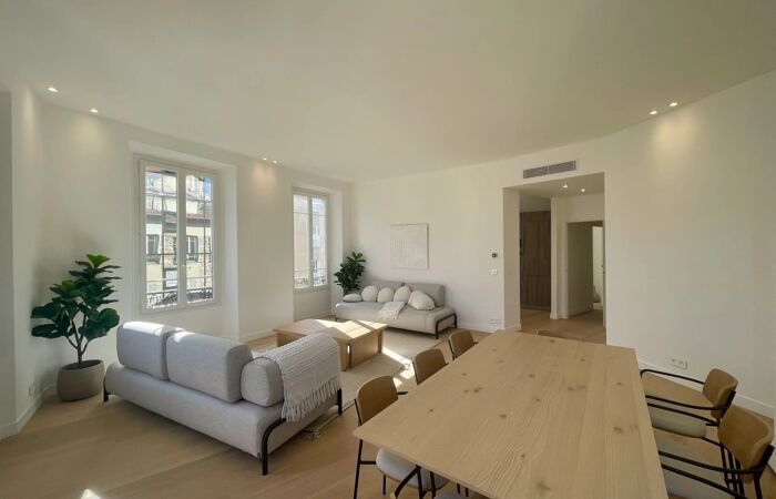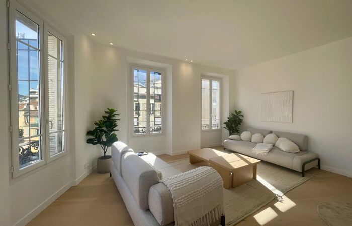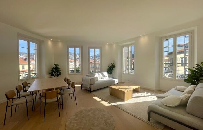 NICE-LE PORT/PLACE DU PIN 5 PIECES Idéalement situé sur la très recherchée Place du Pin, entre le Port de Nice et la place Garibaldi, en avant-dernier étage avec ascenseur d'un bel immeuble niçois, nous vous proposons ce superbe appartement 5 pièces de 137 m2 entièrement rénové avec des matériaux de qualité, offrant de beaux volumes et plus de 3 mètres de hauteur sous plafond. Il se compose d'une entrée desservant toutes les pièces, un séjour / salle à manger de 35 m2 donnant sur la place avec une vue dégagée jusqu'au Mont Boron, une cuisine équipée attenante semi-ouverte, 4 chambres dont 2 suites avec leur salle d'eau et dressing, salle d'eau invités et WC séparé. Proche de toutes les commodités. Ligne 1 & 2 du Tramway, proximité des commerces et des écoles. Si vous désirez plus d'informations ou une visite, n'hésitez pas à nous contacter. 12 Lots. Charges annuelles : 2124euros Estimation des coûts annuels d'énergie du logement entre 1950euros et 2670euros par an. Les informations sur les risques auxquels ce bien est exposé sont disponibles sur le site Géorisques : georisques.gouv.fr Pour toutes demandes d'informations et visite, merci de contacter Samy GWIAZDA au +33673676859