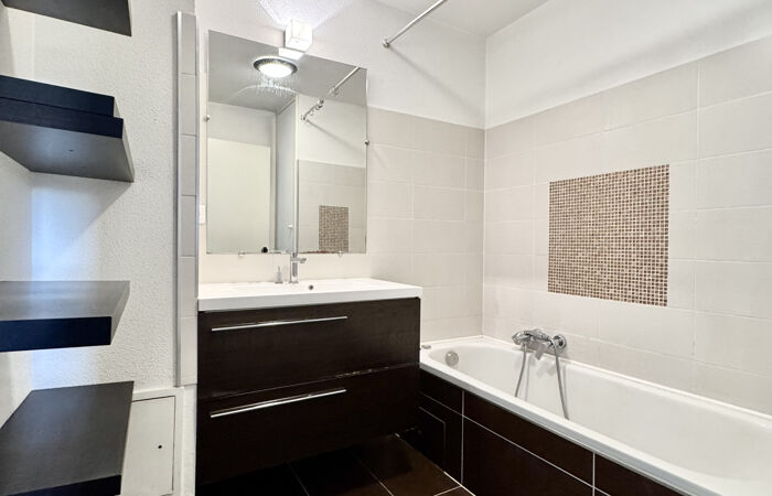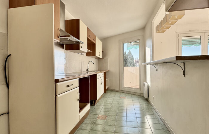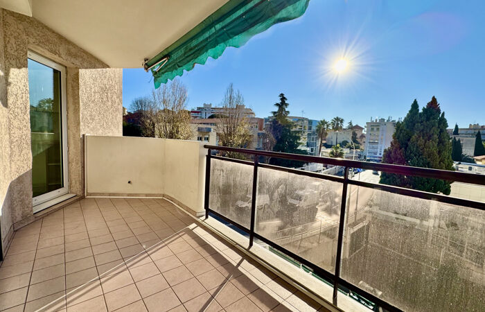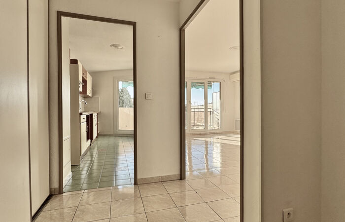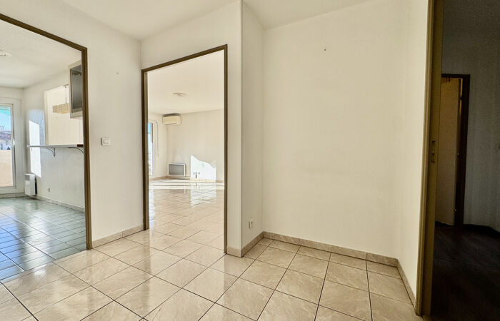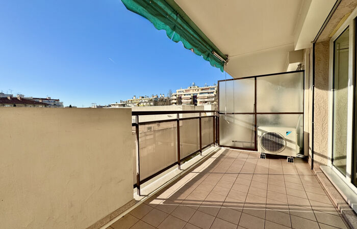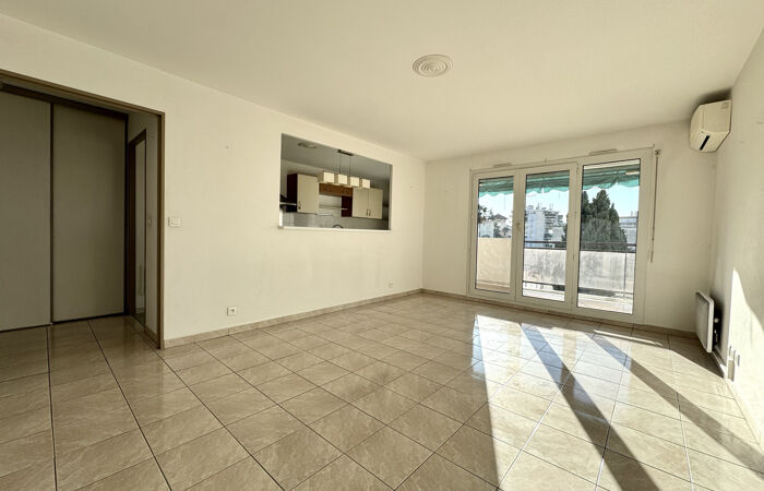 Au troisième étage d'un immeuble de standing, grand F3 traversant de 70m2 composé d'une entrée avec placard, un grand séjour de 20m2 et une cuisine séparée ouverts sur une belle loggia d'environ 8m2, deux chambres avec placard, une salle de bains et des WC séparés.