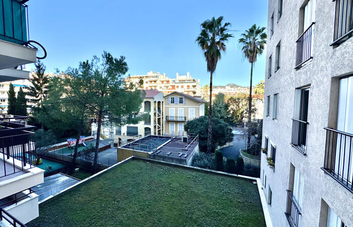 Séjour et cuisine exposés PLEIN SUD, chambres au nord sur cour au calme absolu. Très jolie vue dégagée. Cuisine aménagée, double vitrage, volets roulants, climatisation.