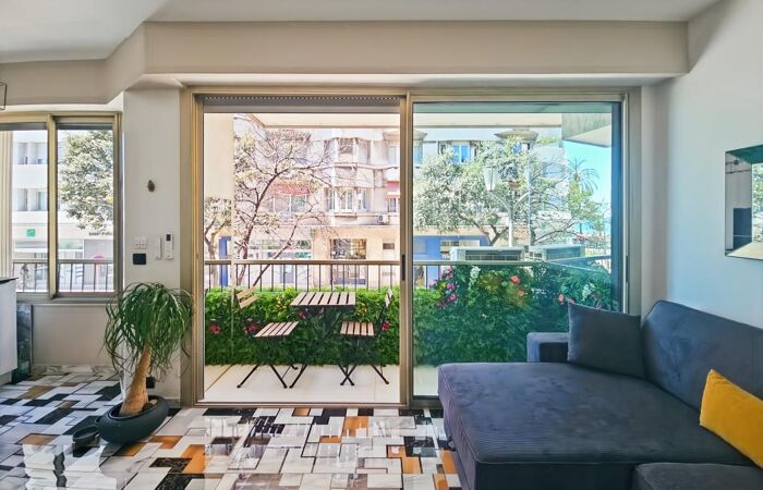 À proximité immédiate du mythique hôtel Negresco, ce magnifique studio entièrement rénové et climatisé se situe au sein d'une résidence de standing avec gardien, en bord de la très recherchée Promenade des Anglais.