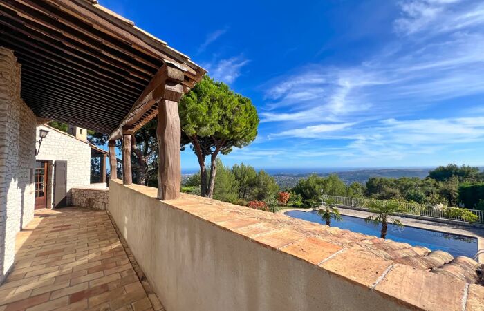 Edifiée en Pierre de Taille, symbole intemporel du charme à la Française, la villa se distingue par son architecture élégante et sa position dominante, offrant une vue panoramique sur la mer jusqu'au Cap d'Antibes.