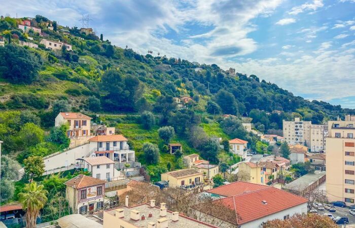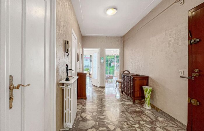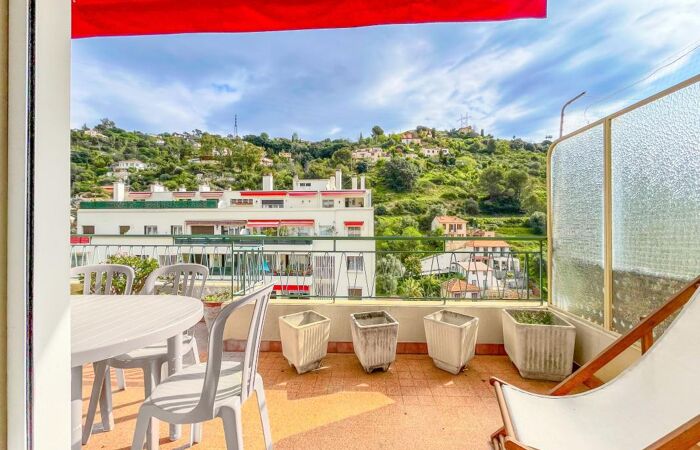 Au 7ᵉ et dernier étage avec ascenseur d'un bel immeuble avec gardienne, appartement 3 pièces traversant de 70m², très lumineux (expositions Est/Ouest). Il se compose d'une entrée, d'une grande cuisine dinatoire, d'un séjour, de deux chambres, ouvrant sur une grande terrasse plein ciel de 13 m² et un balcon, vues dégagées sans vis-à-vis, aperçu mer.