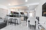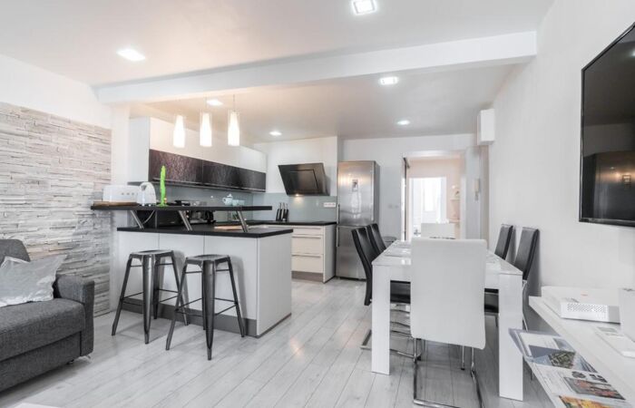 Séjour intégrant la cuisine d'une surface de 23m² donnant sur cette belle terrasse à ciel ouvert de 50m², au calme absolu.