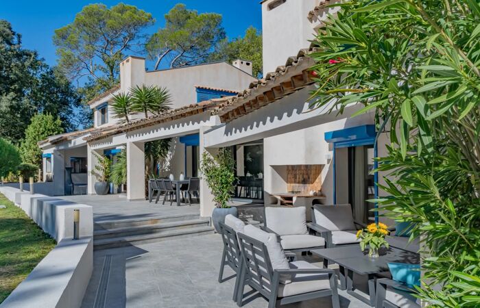 VILLA DE PRESTIGE - DOMAINE SÉCURISÉ VALBONNE - Située dans le très prisé et sécurisé Domaine de la Veronière, cette propriété d'exception incarne l'élégance et la sérénité provençale. Le bien est édifié sur un magnifique parc plat et paysager de 5 000 m², offrant un calme absolu et une intimité totale (sans vis-à-vis). Le cadre est idéal pour une résidence principale ou secondaire de haut standing.' LA VILLA HAUT DE GAMME (544 M²) La résidence principale de 544 m² habitables est conçue pour le confort et la réception. Parc 5000 m2 • Vastes Volumes : Elle propose une organisation parfaite avec un impressionnant double salon/salle à manger baigné de lumière. • Capacité : Sept suites complètes (chacune avec salle de bains/WC), garantissant une capacité d'accueil maximale. • Fonctionnalité : Cuisine équipée professionnelle, bureau bibliothèque, buanderie et une authentique cave à vin.' PRESTATIONS EXTÉRIEURES ET ANNEXES Les équipements sont à la hauteur des standards du luxe : • Loisirs : Grande piscine avec un pool house entièrement équipé (cuisine d'été, salon). • Indépendance : Maison d'invités/Gardien autonome (chambre, SDB, cuisine) complétant le domaine. • Logistique : Vaste esplanade de stationnement, complétée par six garages fermés et dix places de parking extérieures – un atout essentiel.' SITUATION STRATÉGIQUE (RIVIERA/SOPHIA ANTIPOLIS) 'Une adresse logistique idéale pour une clientèle internationale : • Éducation : Proximité immédiate du Centre International de Valbonne (CIV). • Professionnel : Accès direct et rapide à Sophia Antipolis (10 minutes). • Côte d'Azur : Cannes est à seulement 25 minutes et l'Aéroport International de Nice est facilement accessible (35 minutes).'
