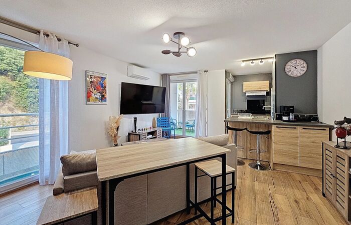 Saint-Laurent-du-Var - Appartement rénové 2 pièces – Terrasse, piscine et garage fermé À Saint-Laurent-du-Var, dans le recherché quartier du bas des Rascas, découvrez cet agréable appartement de 41 m² entièrement rénové, offrant un cadre de vie confortable et moderne. Ce bien se compose d’un lumineux séjour ouvert sur une cuisine américaine neuve et entièrement équipée, l’ensemble bénéficiant de deux grandes portes-fenêtres qui offrent une double exposition et une luminosité remarquable. Vous apprécierez également la chambre confortable, les toilettes séparées ainsi que la salle de bain entièrement refaite à neuf, le tout dans une rénovation récente et de qualité. L’appartement dispose d’une agréable terrasse de 7,18 m² idéale pour profiter d’instants de détente en extérieur. Entièrement climatisé et présentant un excellent classement énergétique (DPE en C / GES en A), il garantit un confort optimal en toutes saisons. La résidence met à disposition une piscine, particulièrement appréciable durant l’été, et comprend une place de parking privative au sein d’un garage, un véritable atout dans le secteur. Situé à proximité immédiate des commerces, des supermarchés et du centre commercial Cap 3000, l’appartement bénéficie également d’un accès rapide aux transports (arrêt de bus) et aux axes routiers, tout en se trouvant à seulement 3 km des plages. Un bien rare sur le secteur, idéal pour une résidence principale comme pour un investissement. Contactez moi dès aujourd’hui pour visiter et découvrir votre futur chez-vous ! Les informations sur les risques auxquels ce bien est exposé sont disponibles sur le site Géorisques : georisques.gouv.fr Pour toutes demandes d'informations et visite, merci de contacter Sylvie BOLANOS au +33601183860